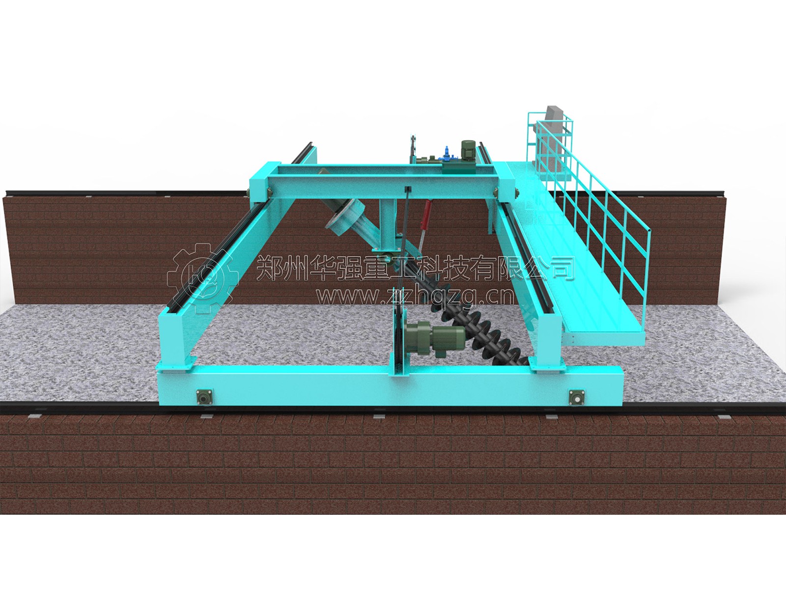螺旋翻拋機用于畜禽糞便、污泥垃圾、糖廠濾泥、糟渣餅粕和秸桿鋸屑等有機廢棄物的發(fā)酵翻堆,廣泛應(yīng)用于有機肥廠、復(fù)混肥廠、污泥垃圾廠、園藝場以及雙孢菇種 植廠等的發(fā)酵腐熟和去除水分作業(yè)。適用于好氧發(fā)酵,可與太陽能發(fā)酵室、發(fā)酵槽和移行機等配套使用。與移行機配套使用可實現(xiàn)一機多槽用的功能。與其配套的發(fā) 酵槽既可連續(xù)出料也可批量出料。效率高,運行平穩(wěn),堅固耐用,翻拋均勻。