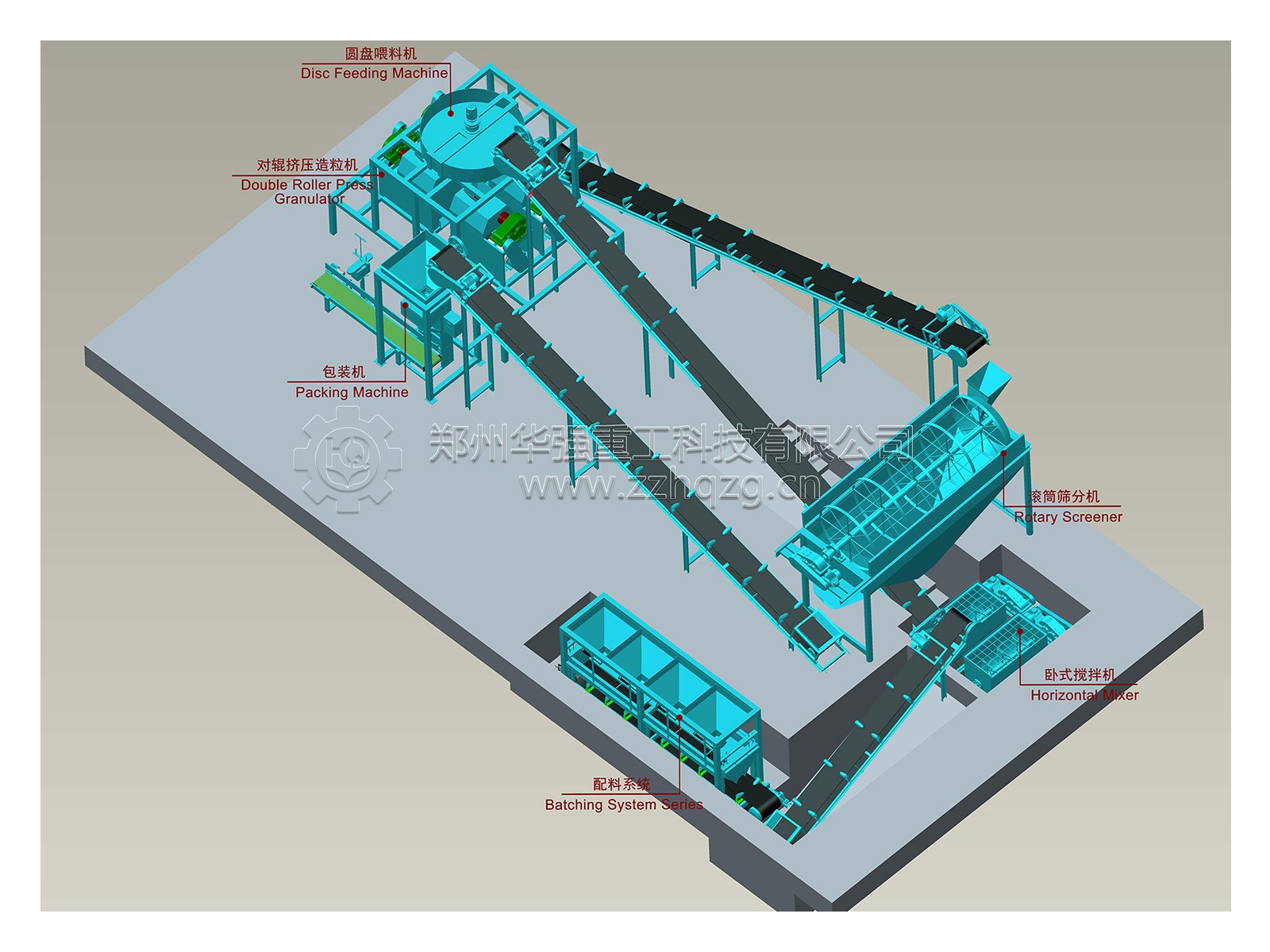 對(duì)輥擠壓造粒機(jī)生產(chǎn)線是由粉碎機(jī)—喂料機(jī)—攪拌機(jī)—分料器—對(duì)輥擠壓造粒機(jī)—篩分機(jī)—包膜機(jī)—包裝秤組成!
